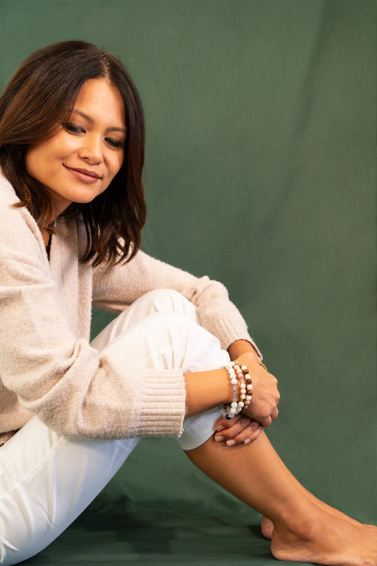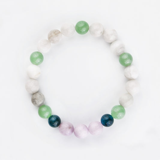 Our stretch bracelets are designed and hand crafted with so much care. Not only are we selecting gemstones to fit the specific intentions, we also factor in the concept of numerology and are mindful of crystal placement, in addition to making sure the stones enhance each other's natural beauty.