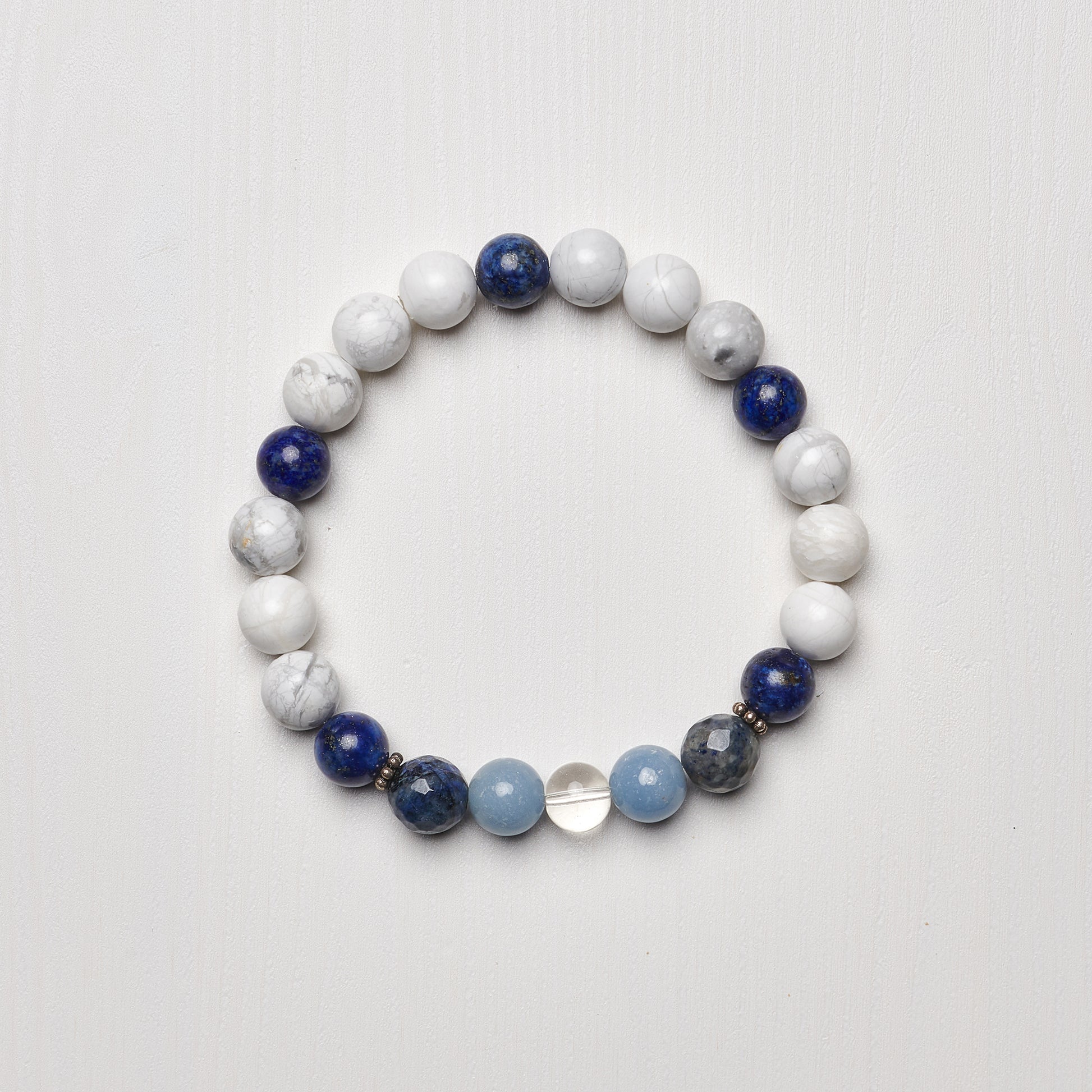 - Contents: Howlite, Angelite, Clear Quartz, Dumortierite, Lapis Lazuli.