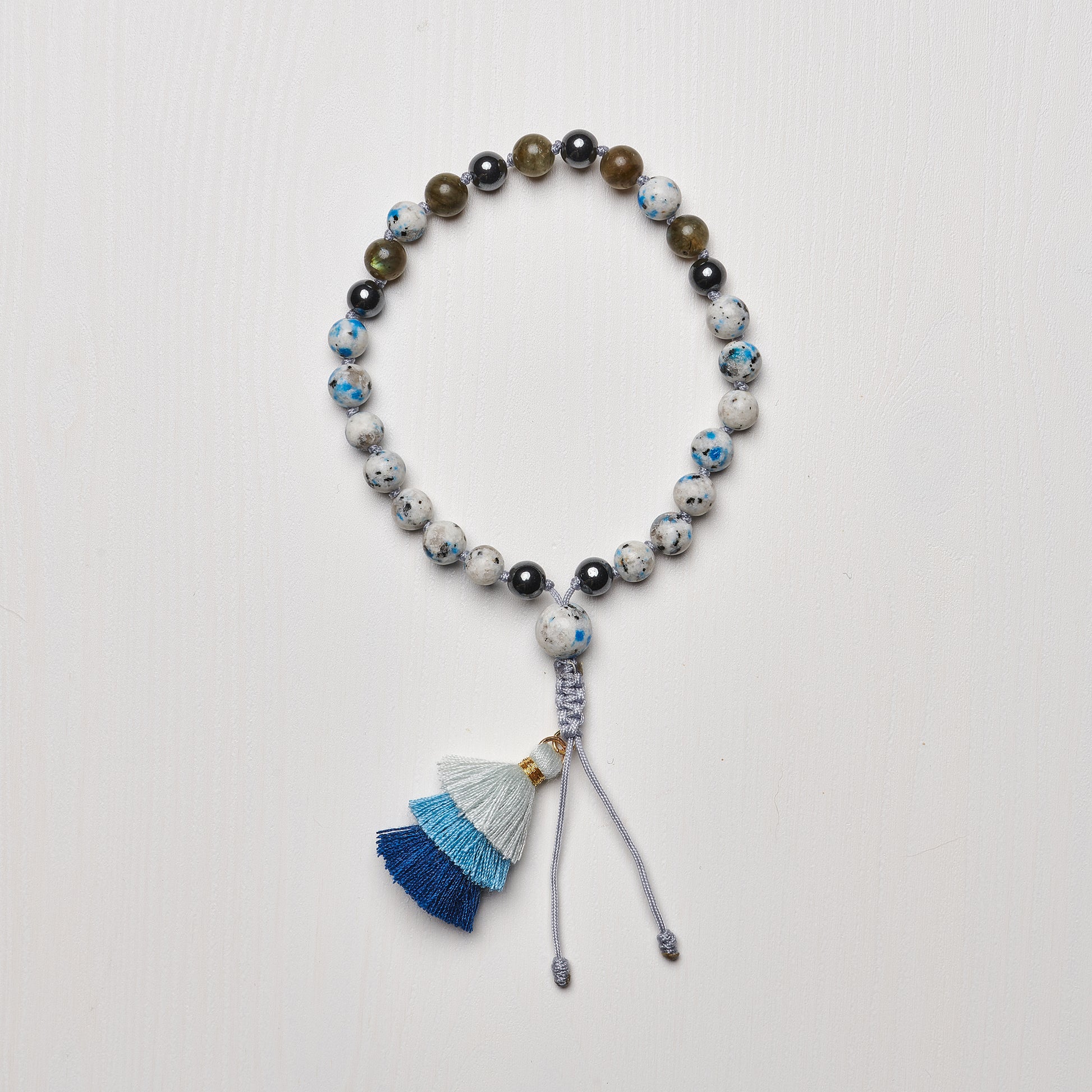K2 associated with strength and resolve, generates harmony and balance in life. Aids in attuning to higher consciousness to access ancient wisdom and enhance personal insight, opening one to new possibilities. Labradorite, the dreamer's stone, enhances mental clarity, encouraging one to realize their goals by getting them out of their own way. Hematite endows us with courage and strength by grounding us safely in our root chakra. With heightened focus, self confidence and self esteem, we're ready to take on any challenge!