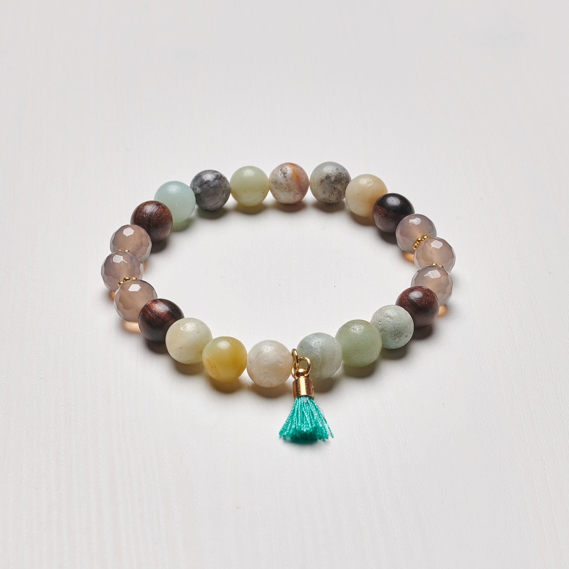 - Contents: Amazonite, Grey Agate, Ebony Wood.
