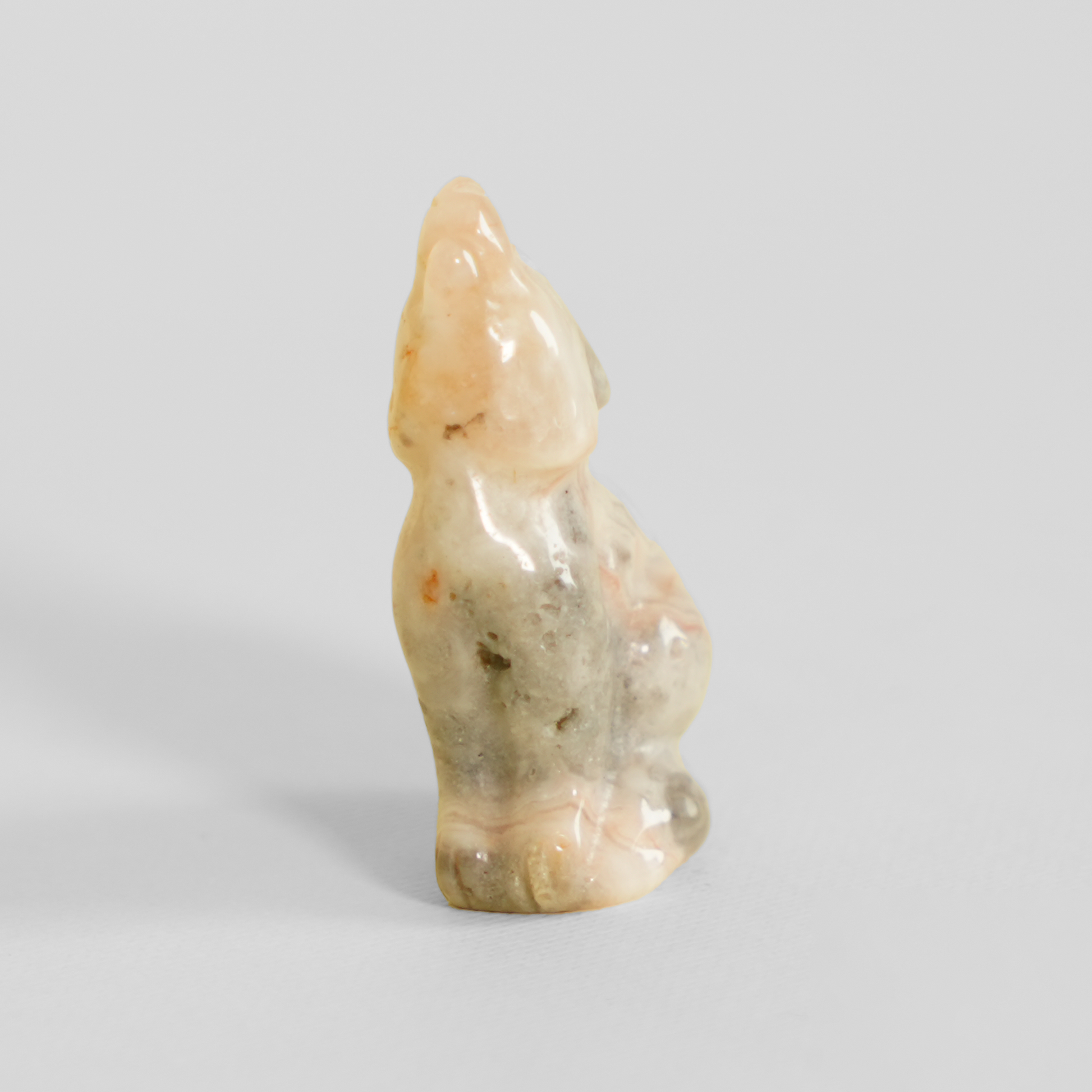 A Crazy Lace Agate Wolf figurine, with its spectrum of vibrant hues, exudes a fierce inner power, protection, and refinement. Crazy Lace Agate is known for its grounding and cheerful properties that symbolize joy, happiness, and protection. This stone also promotes stability and balance, inspiring a sense of calm and peace. The form of a wolf, a powerful and loyal creature, embodies these qualities and brings a sense of playfulness and bravery. This stunning statue, with its perfect balance of beauty and meaning, is sure to bring joy and grounding to the soul of any spiritual seeker.