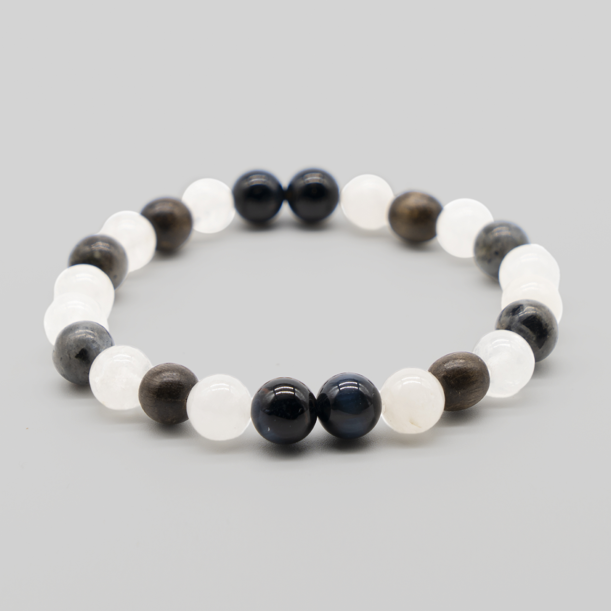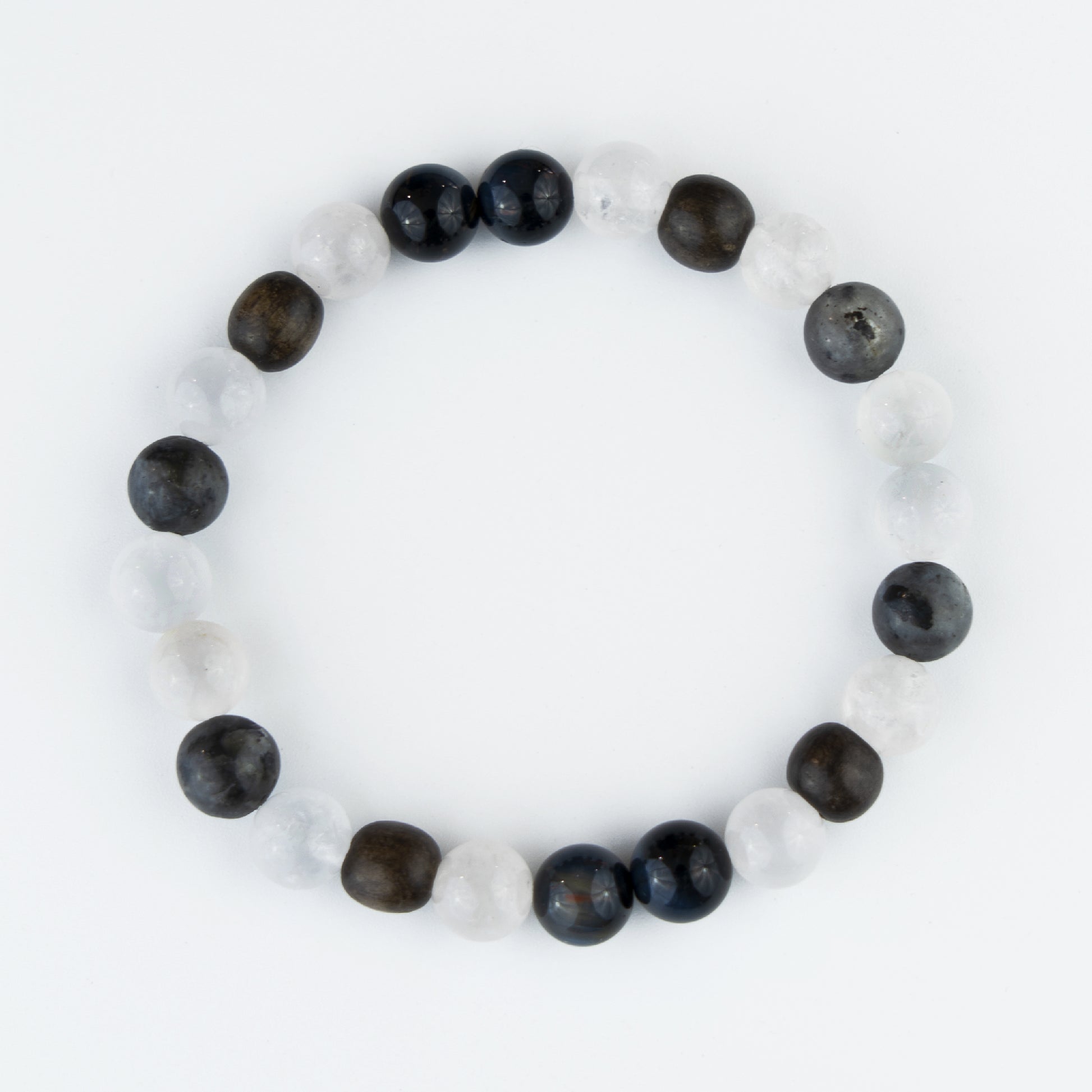 Deeper than knowing, we integrate it into who we BE! With the embody bracelet, we take our knowledge and understanding to the next level utilizing the manifesting stone of Tiger Iron to deepen our connection of spirit and body, grounding our sense of self and purpose, and promote clarity and self appreciation; Greywood keeps us connected to our bodies, activating our root chakra; Blue Pearl Granite, the stone of inner transformation, helps us to better adapt to change, and enhance wisdom; and finally White Jade, to heal any emotional wounds, while harnessing the beauty and positive power of light