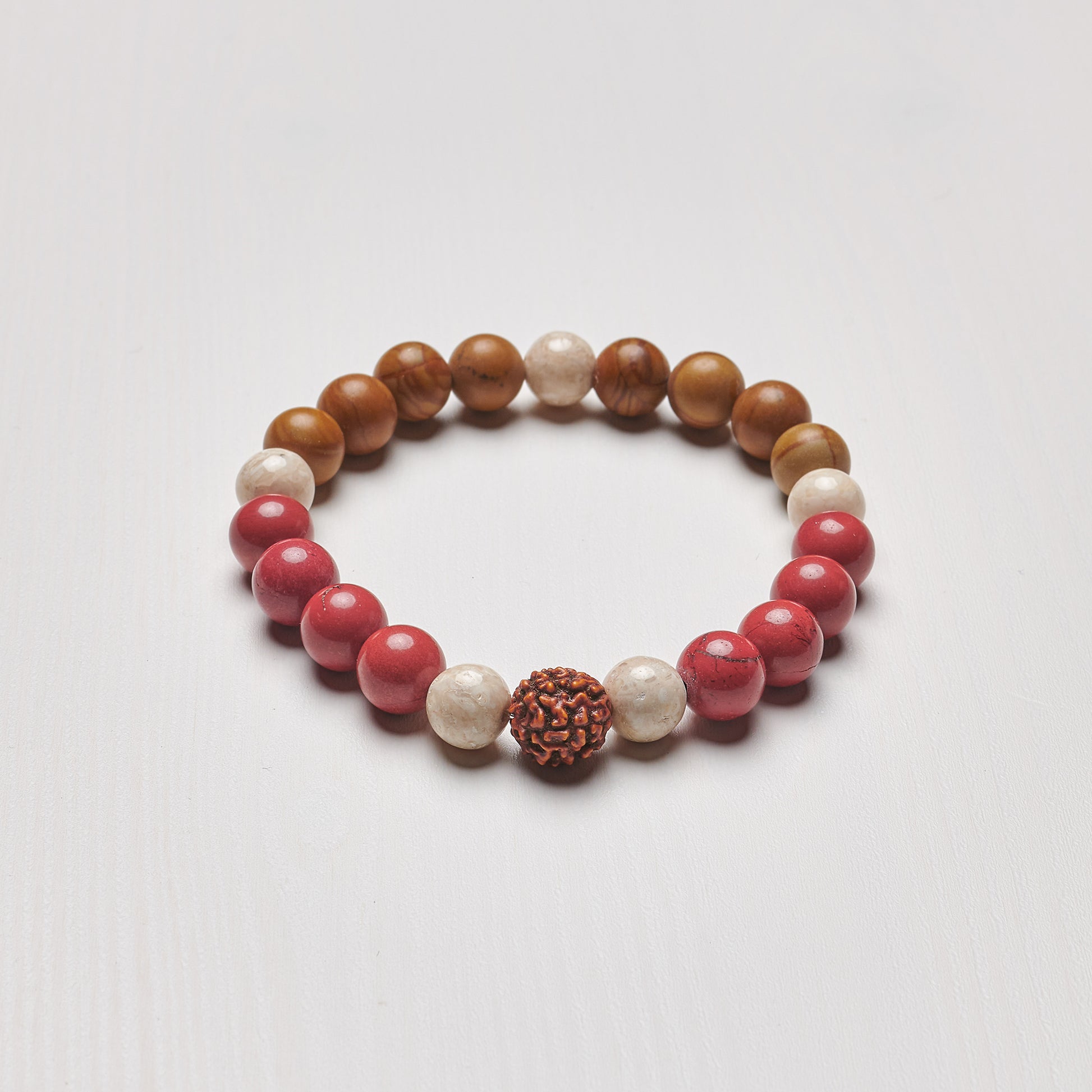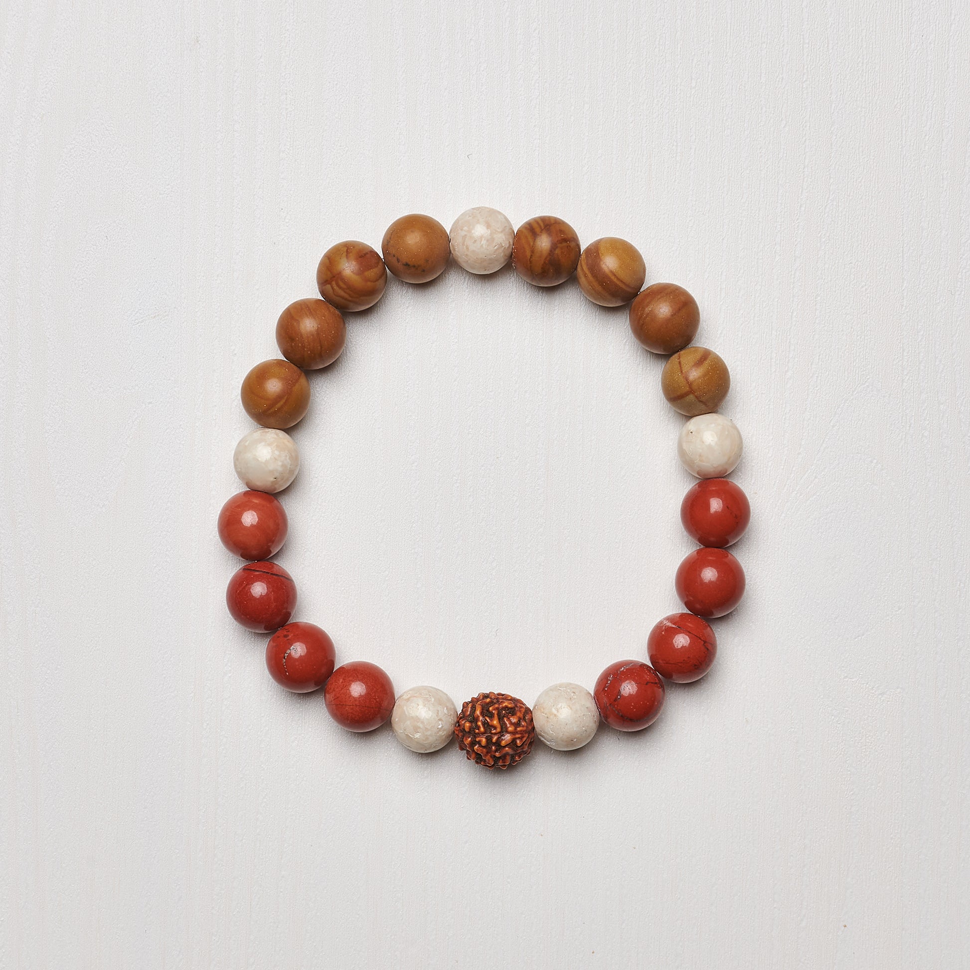 - Contents: Red Jasper, Rudraksha seed, Riverstone, Wood Jasper.