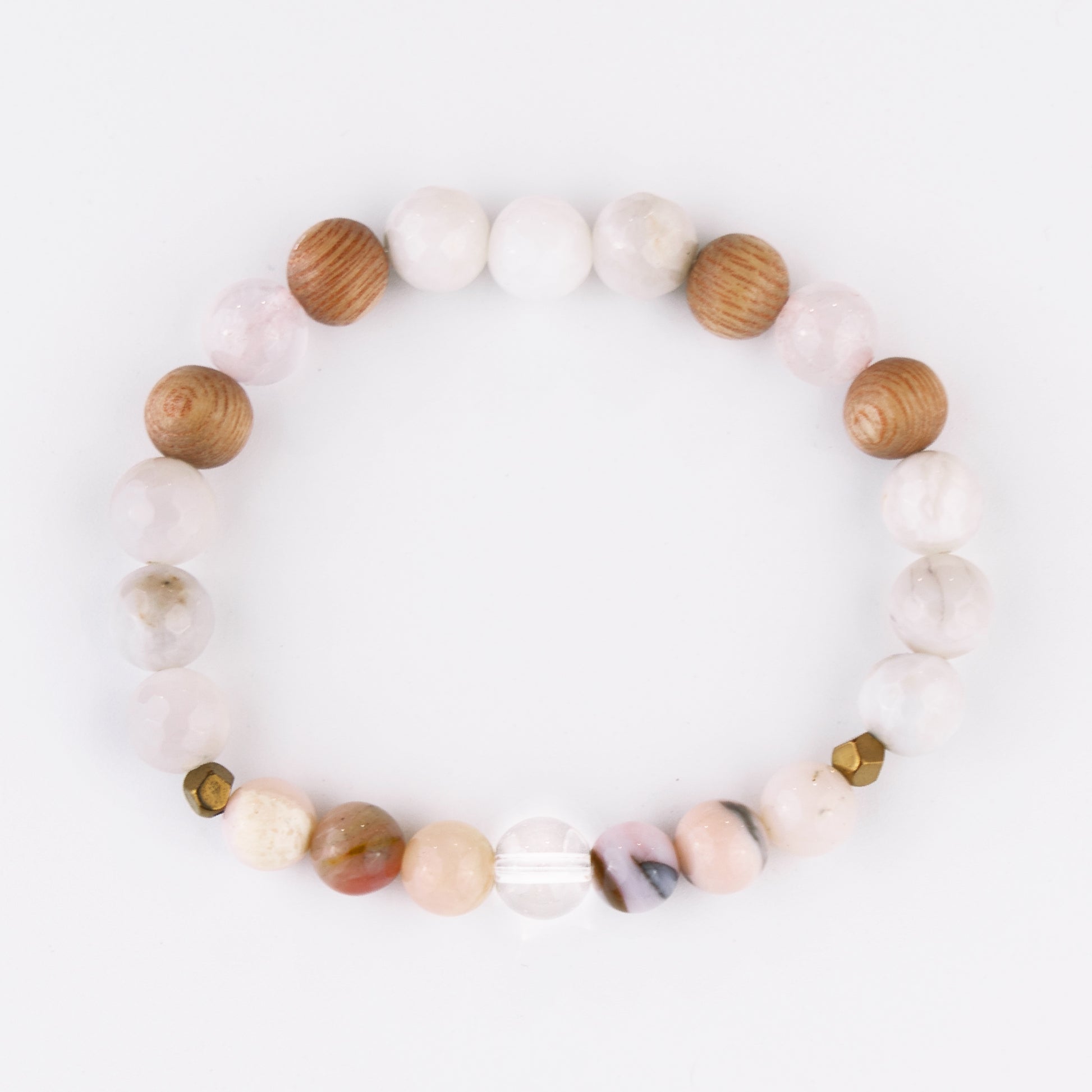 - Contents: Pink Opal, Rose Quartz, Rosewood, Crazy Lace Agate, Clear Quartz, Hematite
