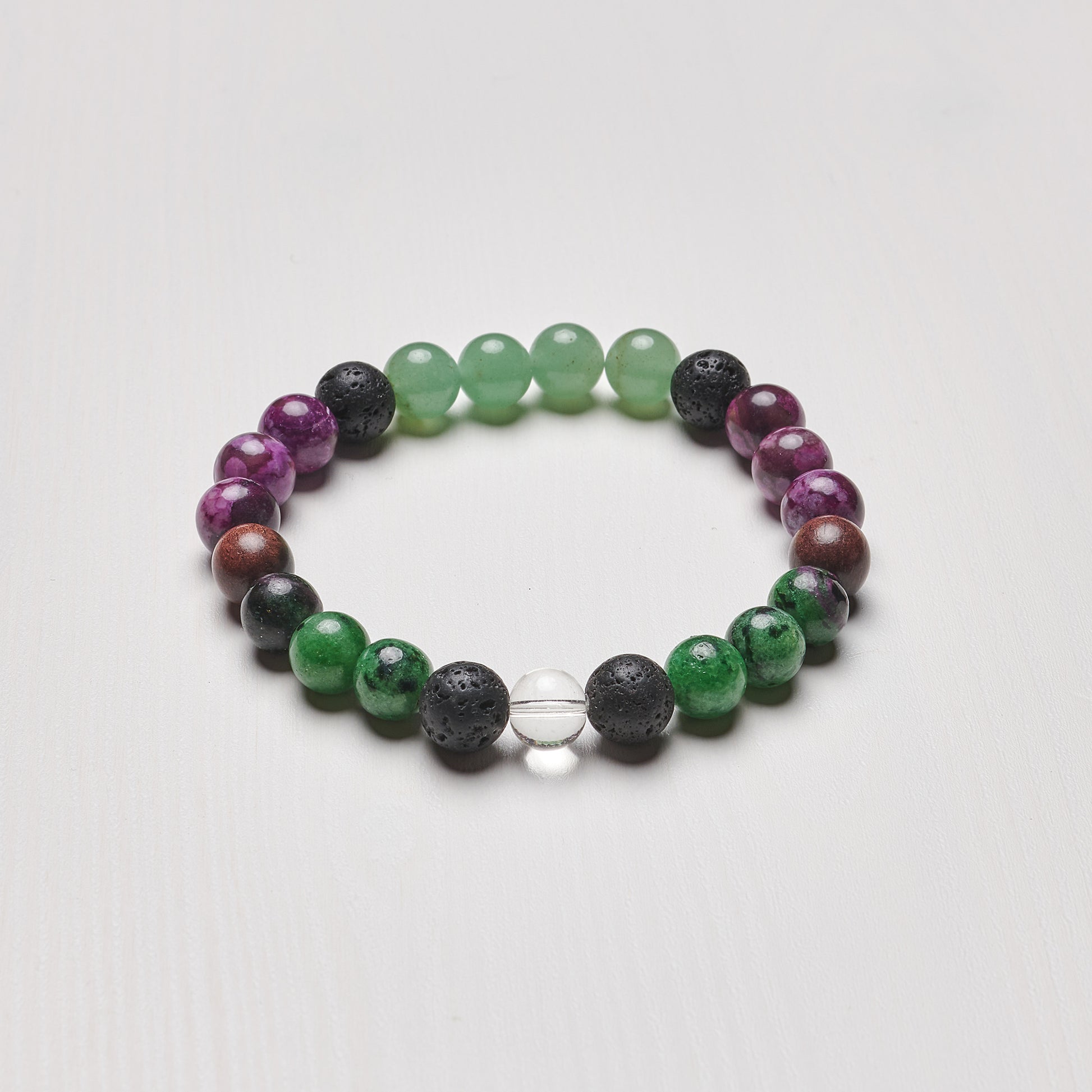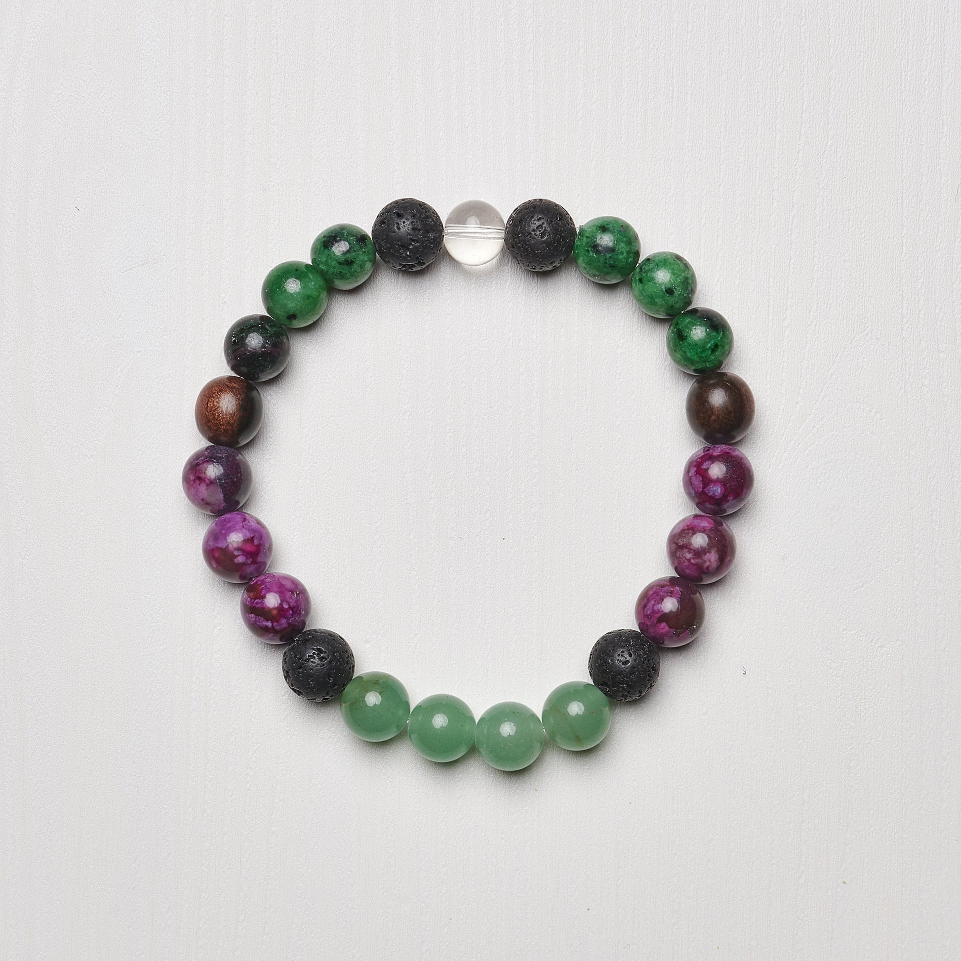 - Contents: ruby zoisite, Lava Stone, Clear Quartz, Aventurine, sugilite, Ebony Wood