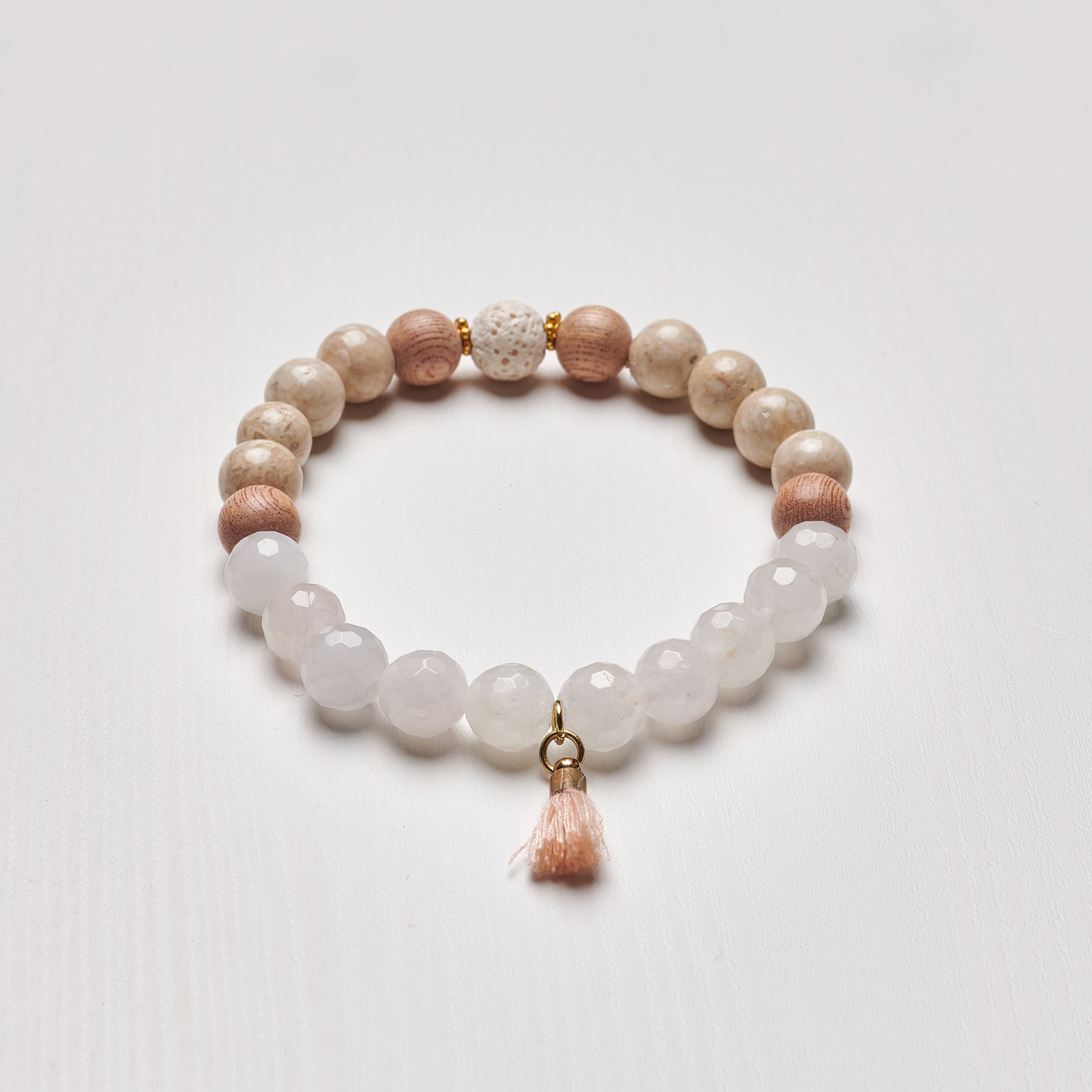 - Contents: Rose Quartz, Rosewood, Riverstone, White Lava Stone.