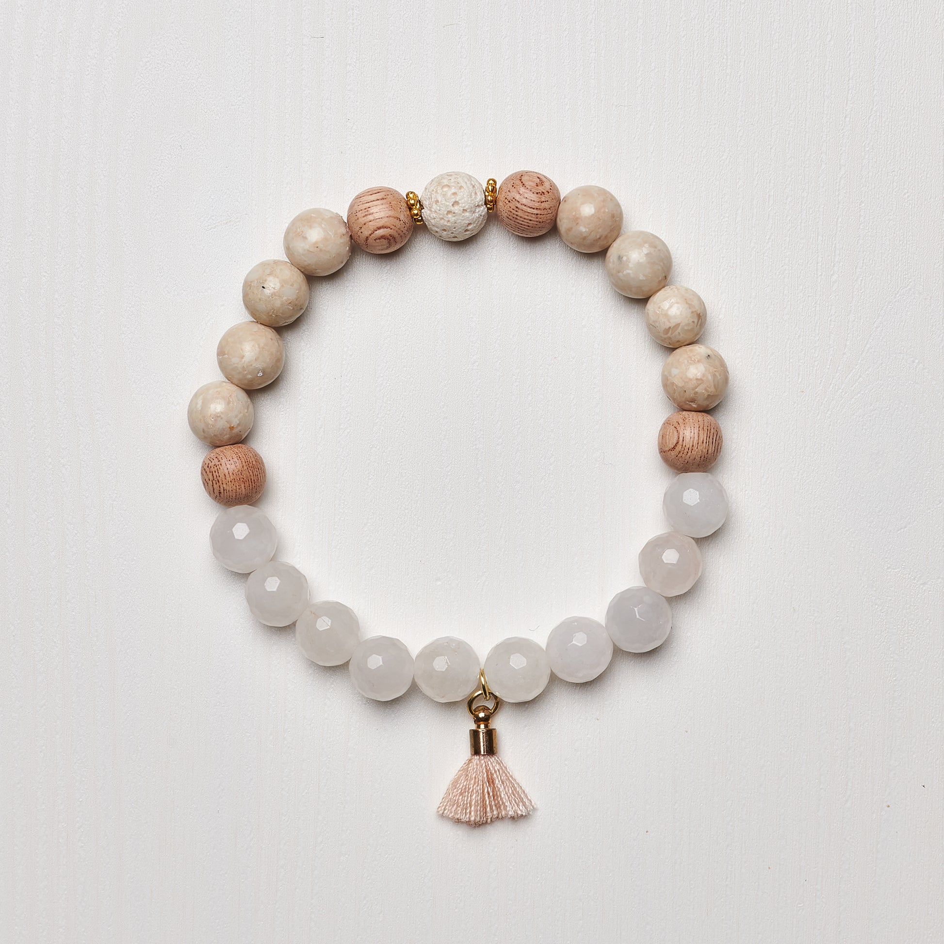 May your character be consistent, and your aura lack corruption. Embody honesty, strong principles, and moral fortitude with our Integrity bracelet. Rose Quartz is used to open the heart, and allow Love to flow freely. When we are able to personify Love, we also personify honesty, fairness, righteousness, truth, and decency. We heal any wounds that our hearts have suffered in the past, tearing down walls and removing fears, resentments, and pain. Riverstone works effortlessly alongside Rose Quartz, lending strength to the wearer, energizing the aura, and allowing the healing and growth process to happen simply, without any force.