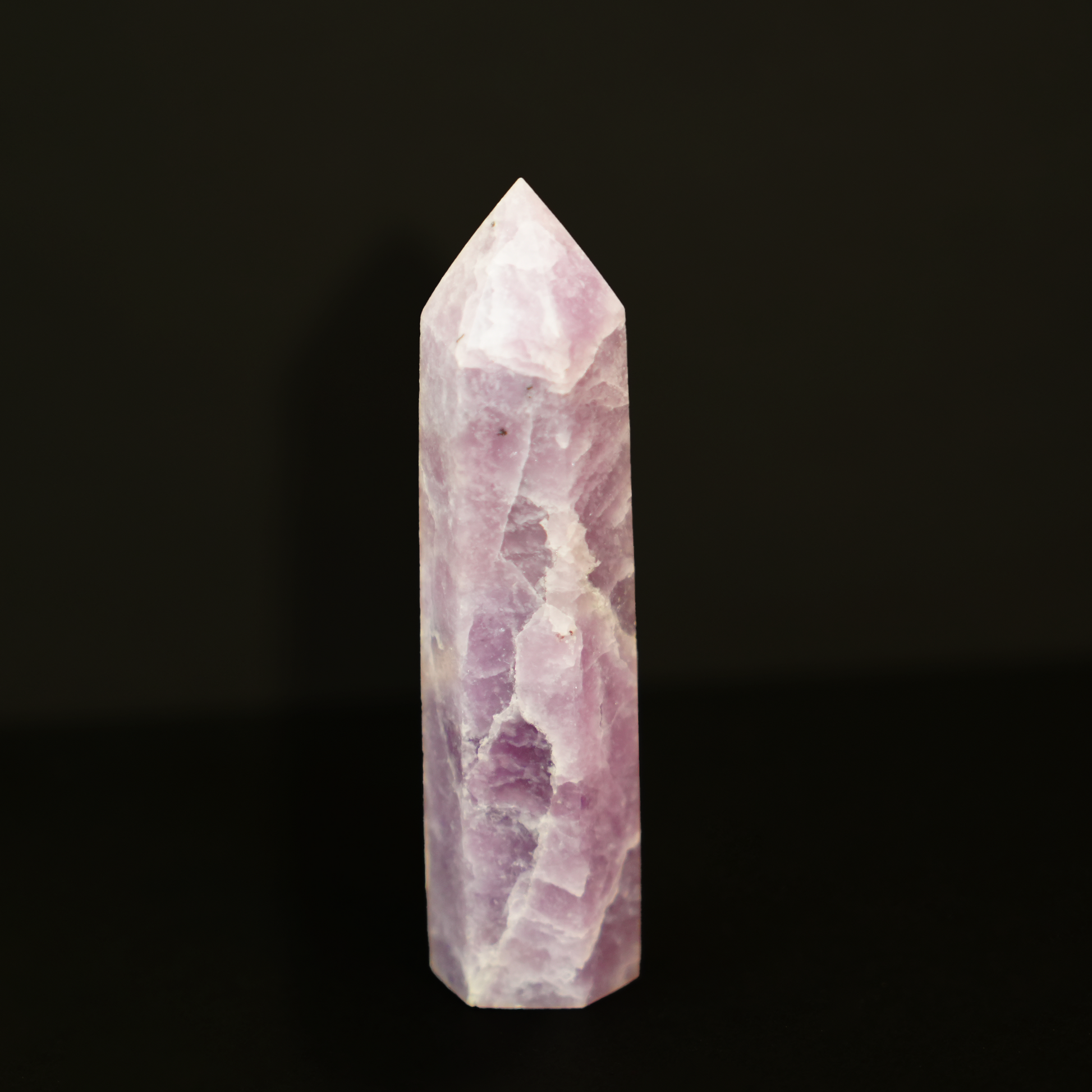 The beautiful mineral of Lepidolite is considered to be a transformative stone, with a gentle, yet deeply powerful energy. It is believed to bring peace and calm to the mind and soul. This lepidolite tower's soft lilac color is said to be a manifestation of its soothing properties, which make it a popular choice for those seeking to cultivate inner peace and tranquility. Additionally, lepidolite is believed to have the power to dispel negative energy, alleviate stress, and promote emotional balance. Its energy fosters spiritual growth and self-discovery, helping individuals to connect with their higher selves and find a deeper sense of meaning and purpose in life.
