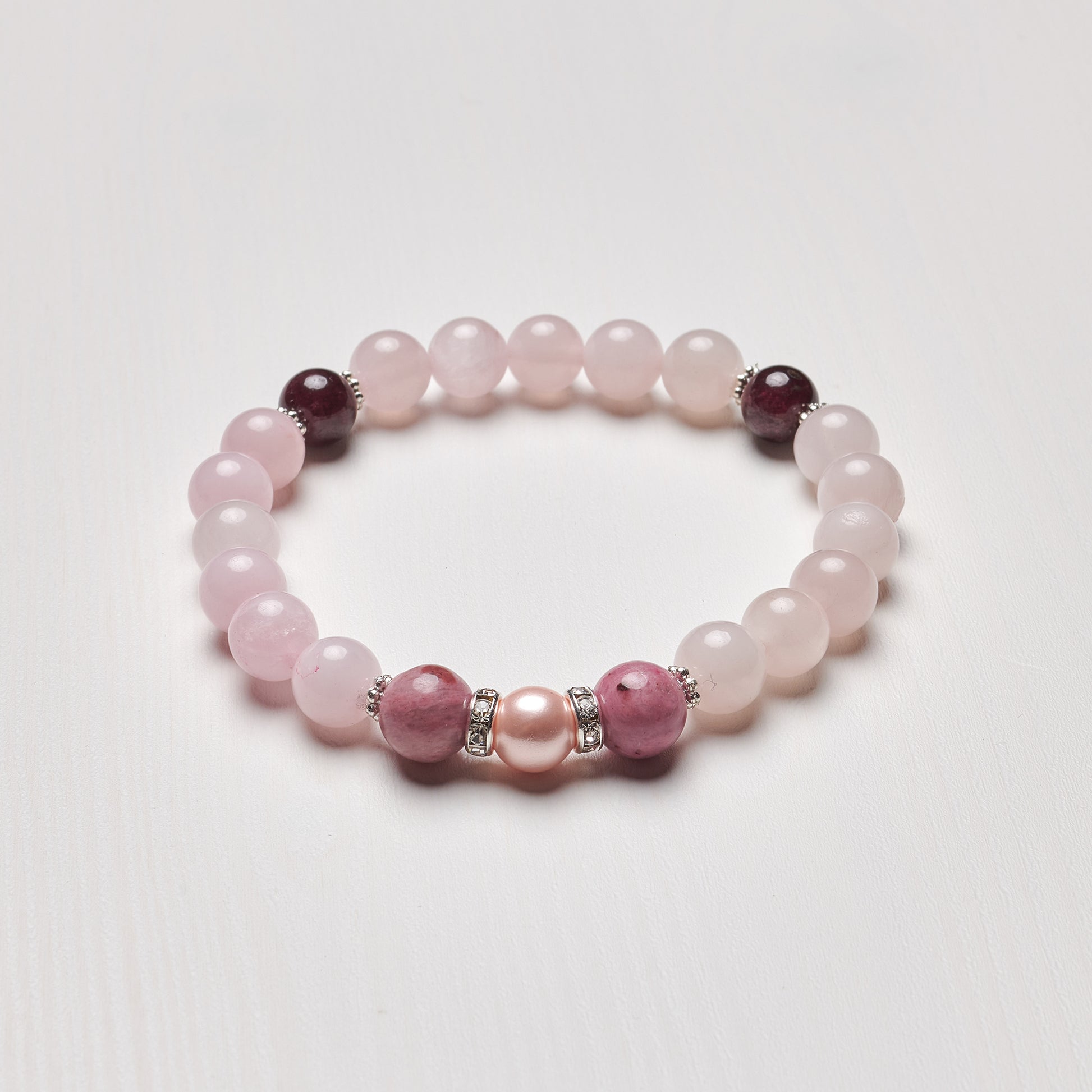 - Contents: Rose Quartz, Rhodonite, Blush Shell Pearl, Garnet