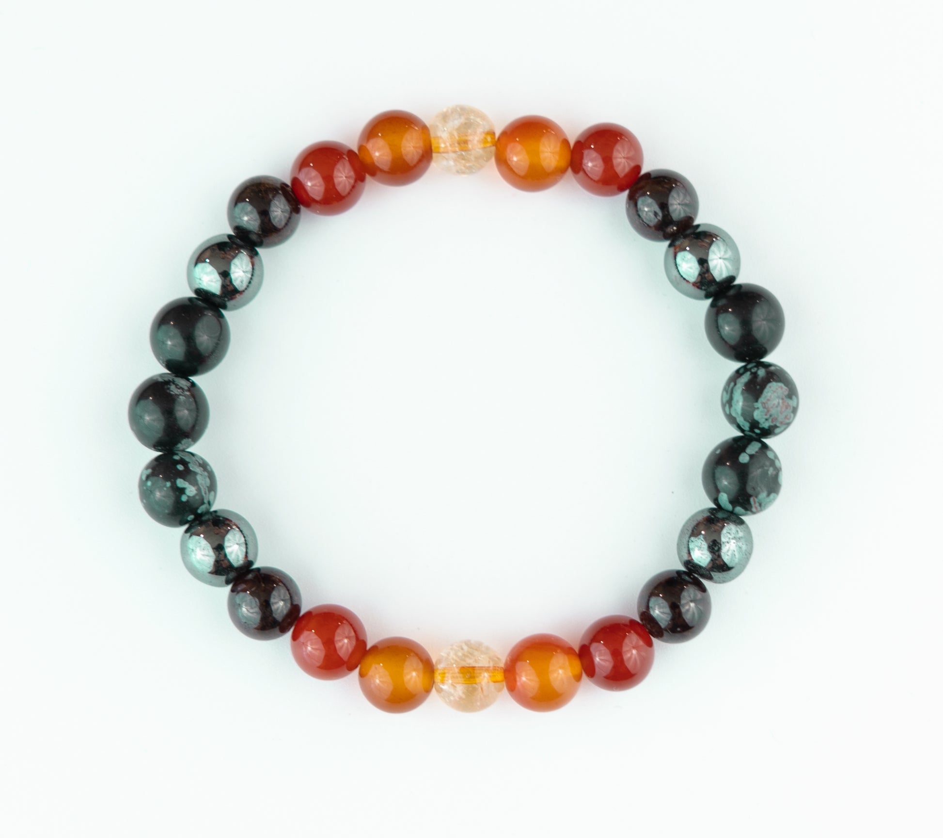 - Contents: Snowflake Obsidian, Hematite, Garnet, Carnelian, Citrine