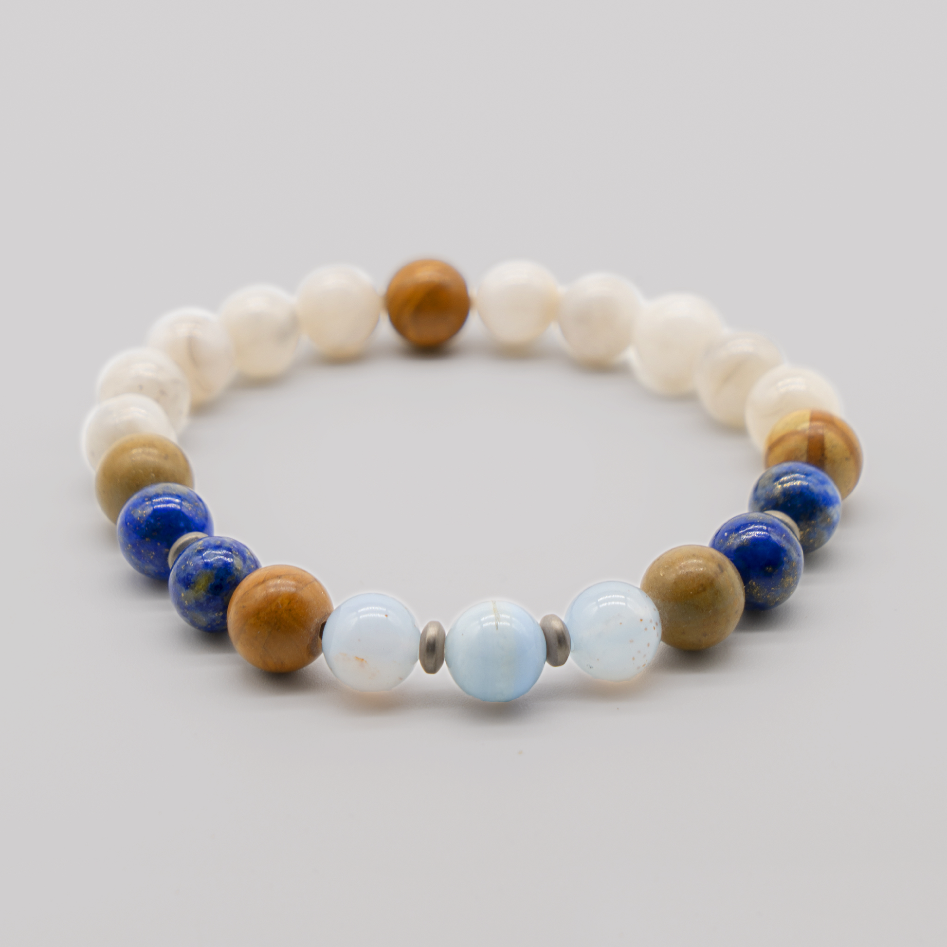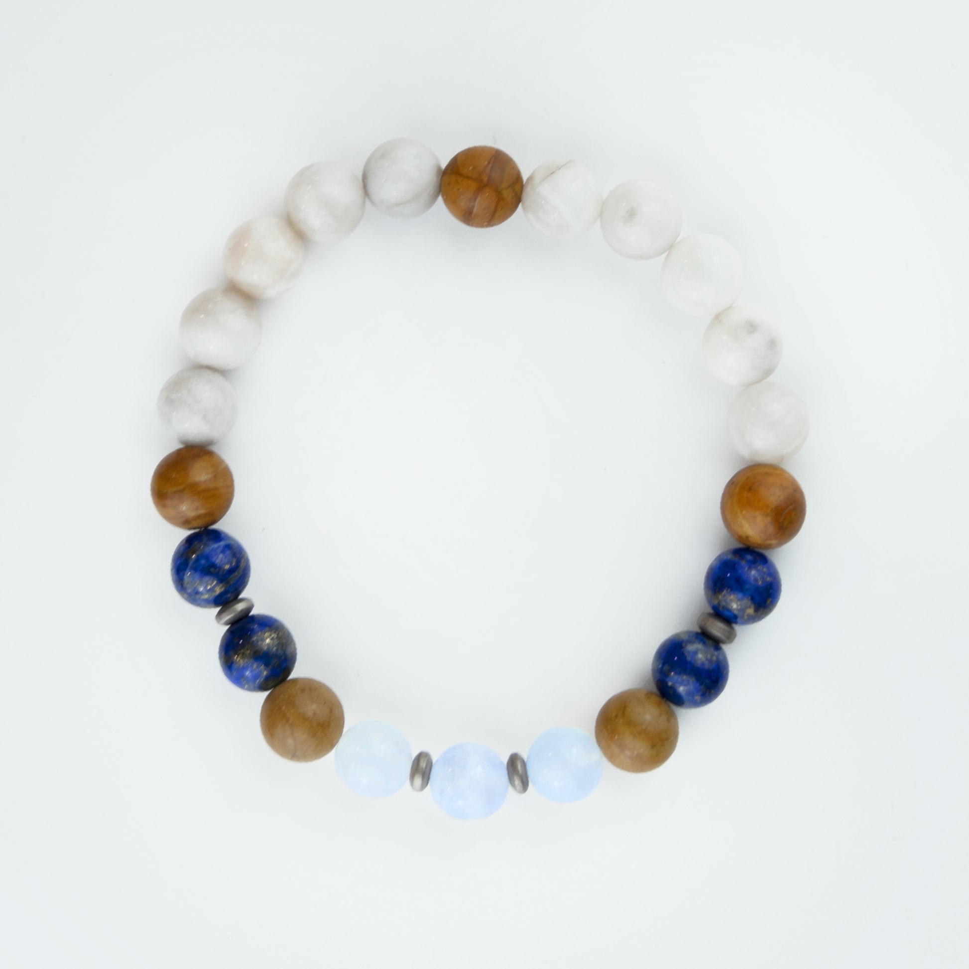 - Contents: Blue Lace Agate, Lapis Lazuli, Crazy Lace Agate, Hematite, Wood Jasper