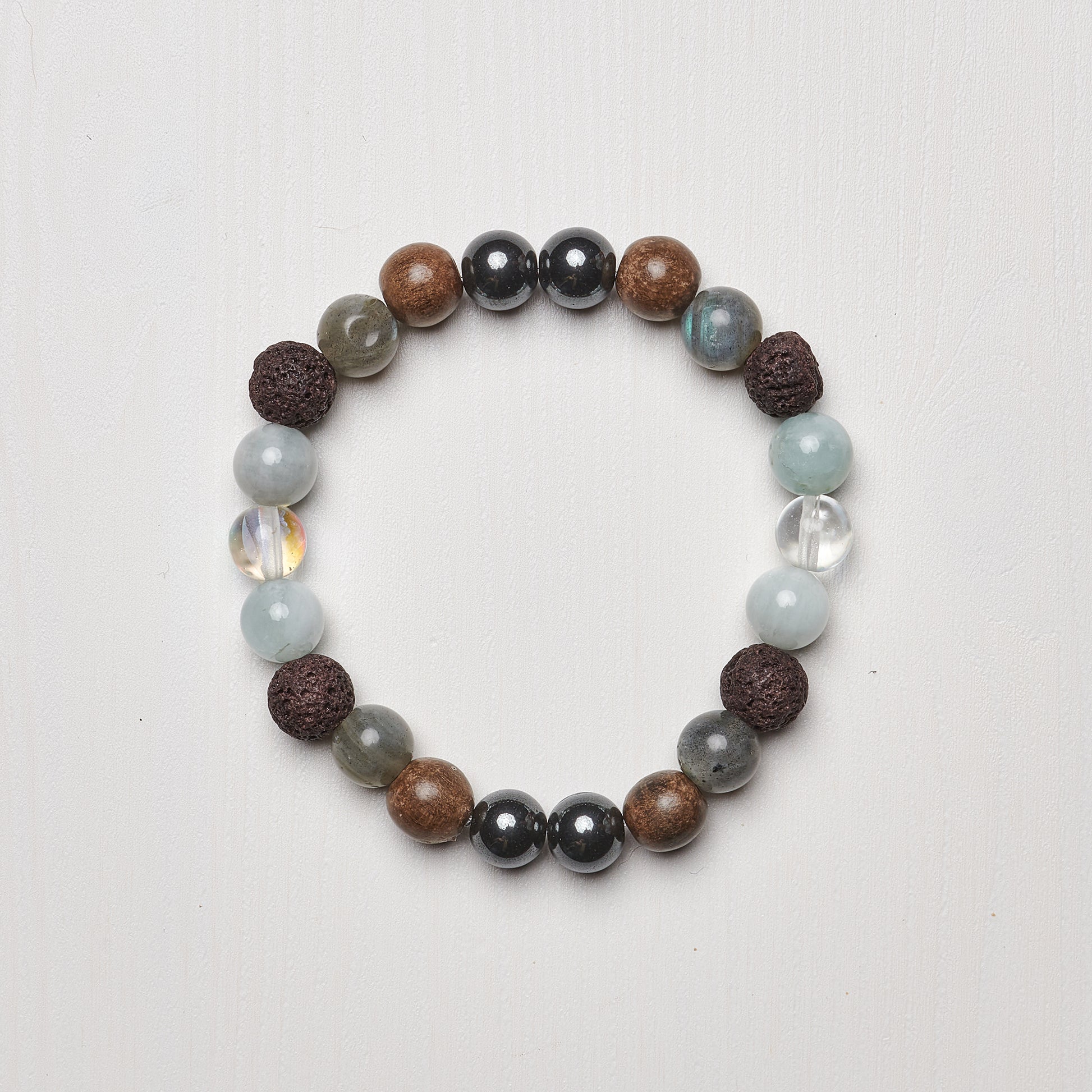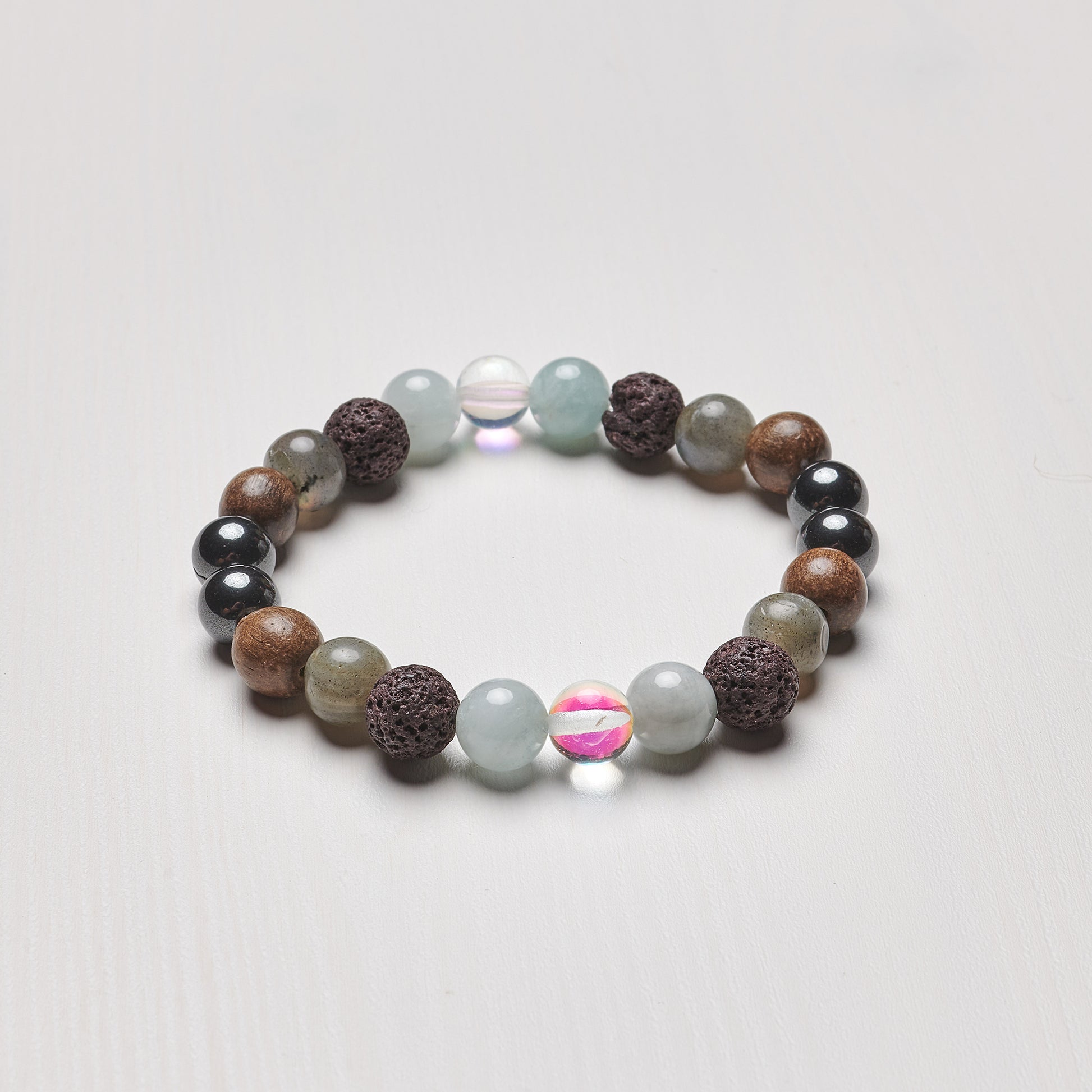 - Contents: Angel Aura Quartz, Aquamarine, Lava Stone, Labradorite, Greywood, Hematite