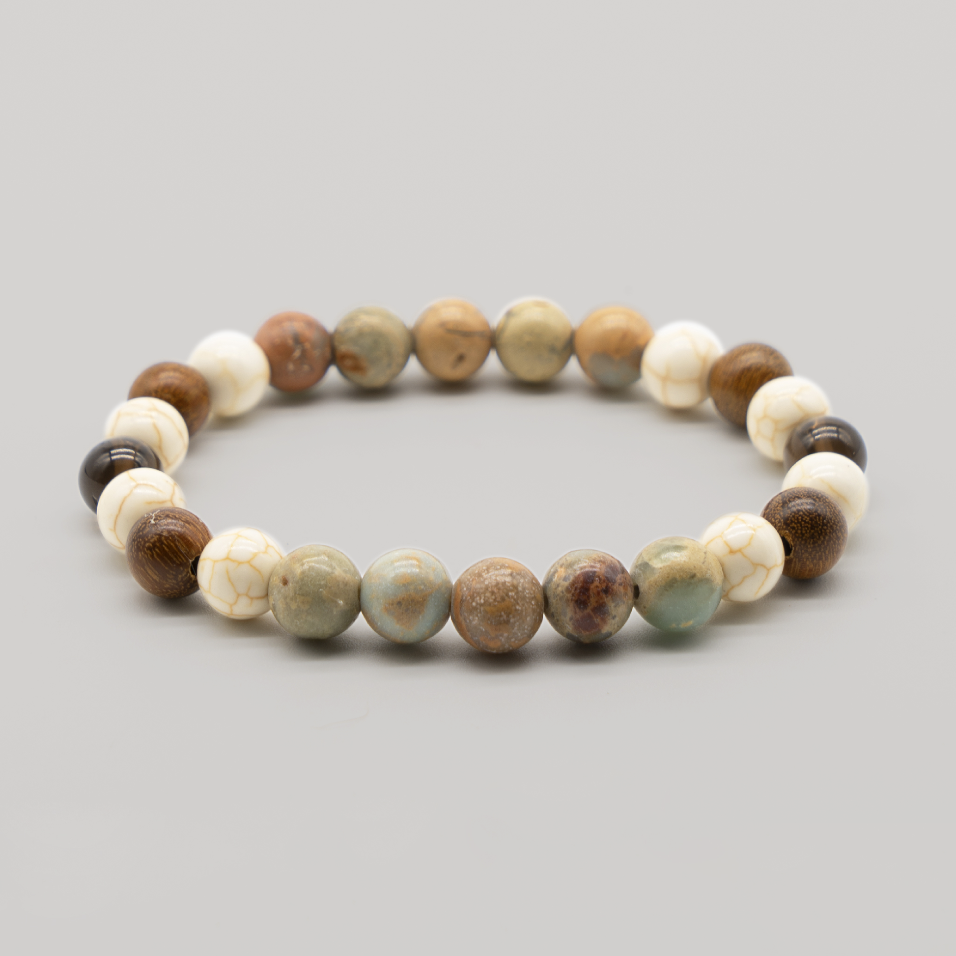 - Contents: Aqua Terra Jasper, Howlite, Sandalwood, Smoky Quartz